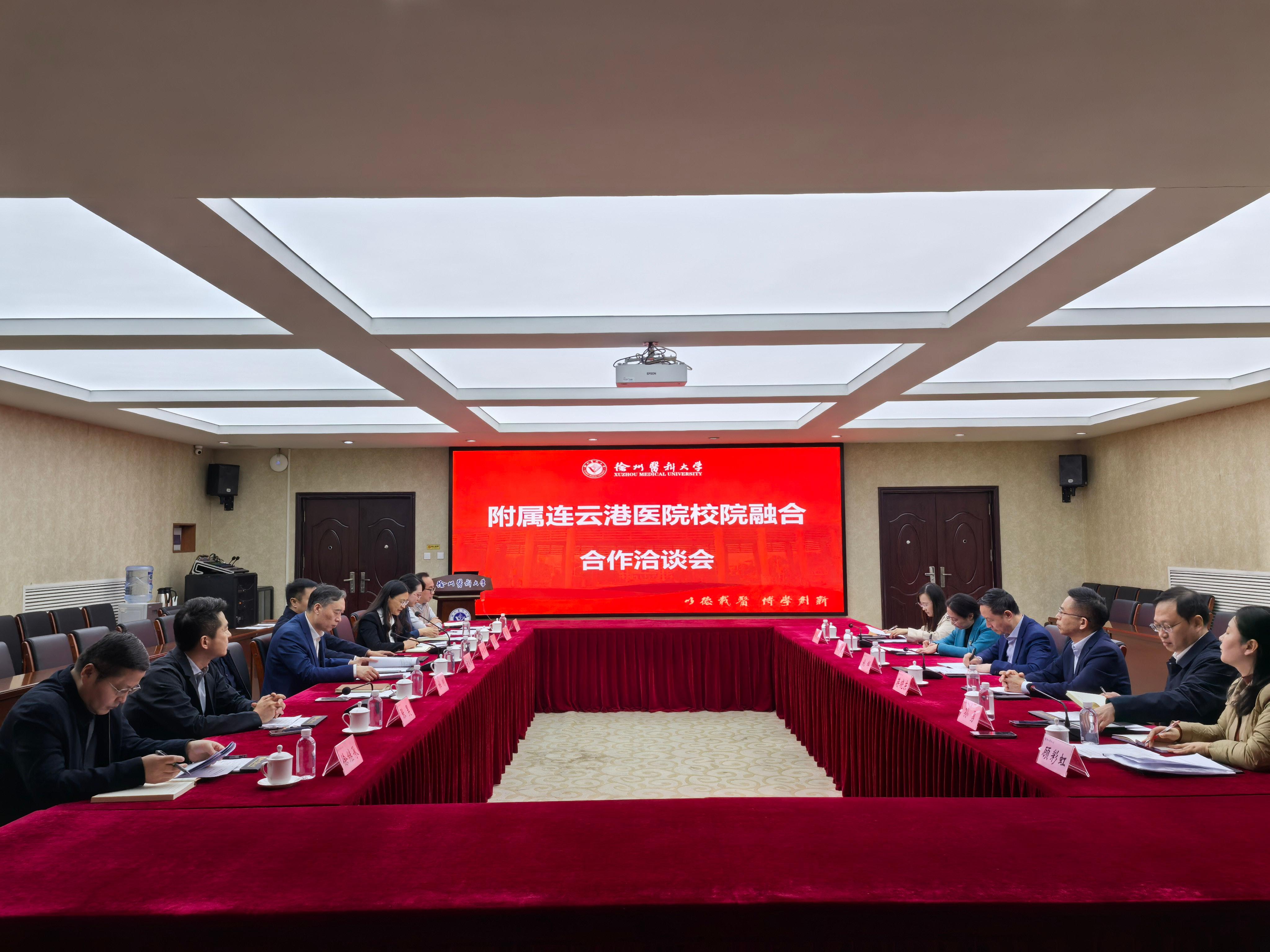 会上,学校各职能部门负责人首先介绍了学校“十五五”专项发展规划和拟开展校院合作重点工作情况。施辉介绍了附属连云港医院近期高质量发展情况以及医院下一步重点工作和发展规划。他表示,附属连云港医院与徐州医科大学有着深厚的历史渊源和合作基础,医院将充分依托学校资源优势,进一步深化校院双方合作,在医学人才培养、科研与成果转化、重点学科专科建设等方面取得新突破。与会人员就干部队伍建设、人才培养、科学研究等专题展开深入探讨和交流。